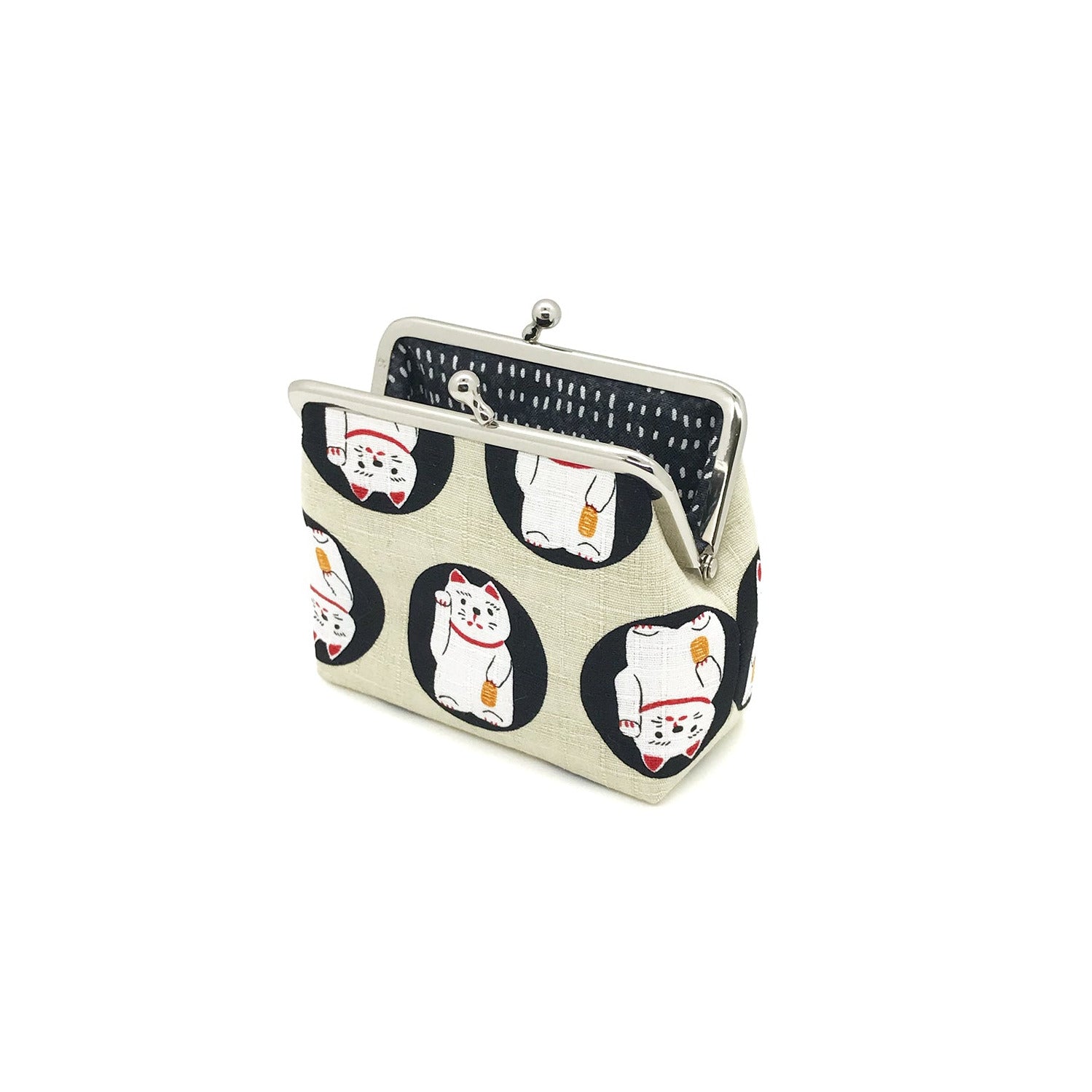 Die beige Münztasche mit Glückskatze ist perfekt für die Aufbewahrung von Kleingeld, Lippenstift oder Notfallsmedikamenten. Das Muster verleiht der Börse eine elegante Note. Ideal für unterwegs und praktisch zugleich.