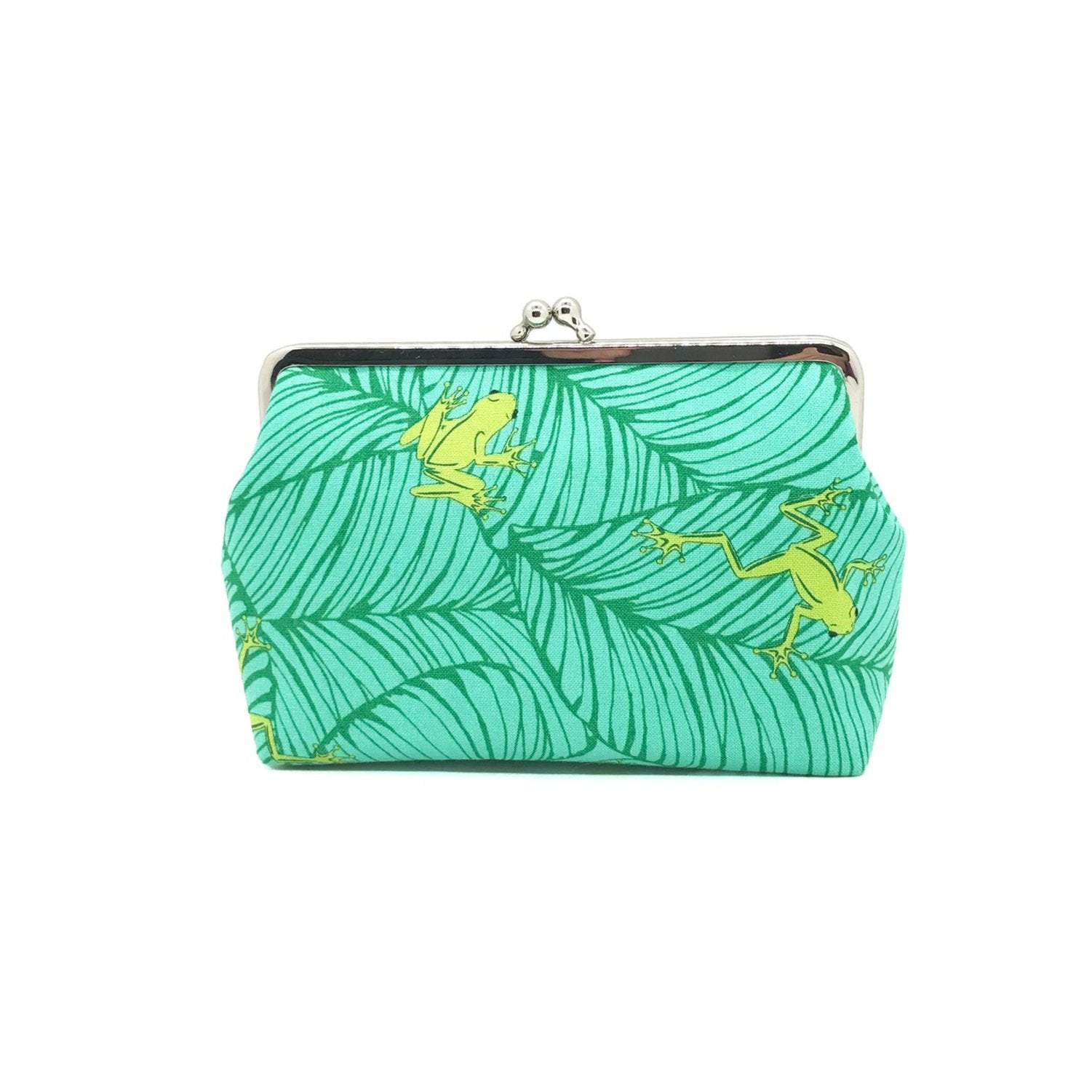 This green clip purse is perfect for when you're on the go and for anyone who wants to have their makeup items close at hand in their handbag. The little frogs also make it a real eye-catcher. The bag can of course also be used as a purse.
