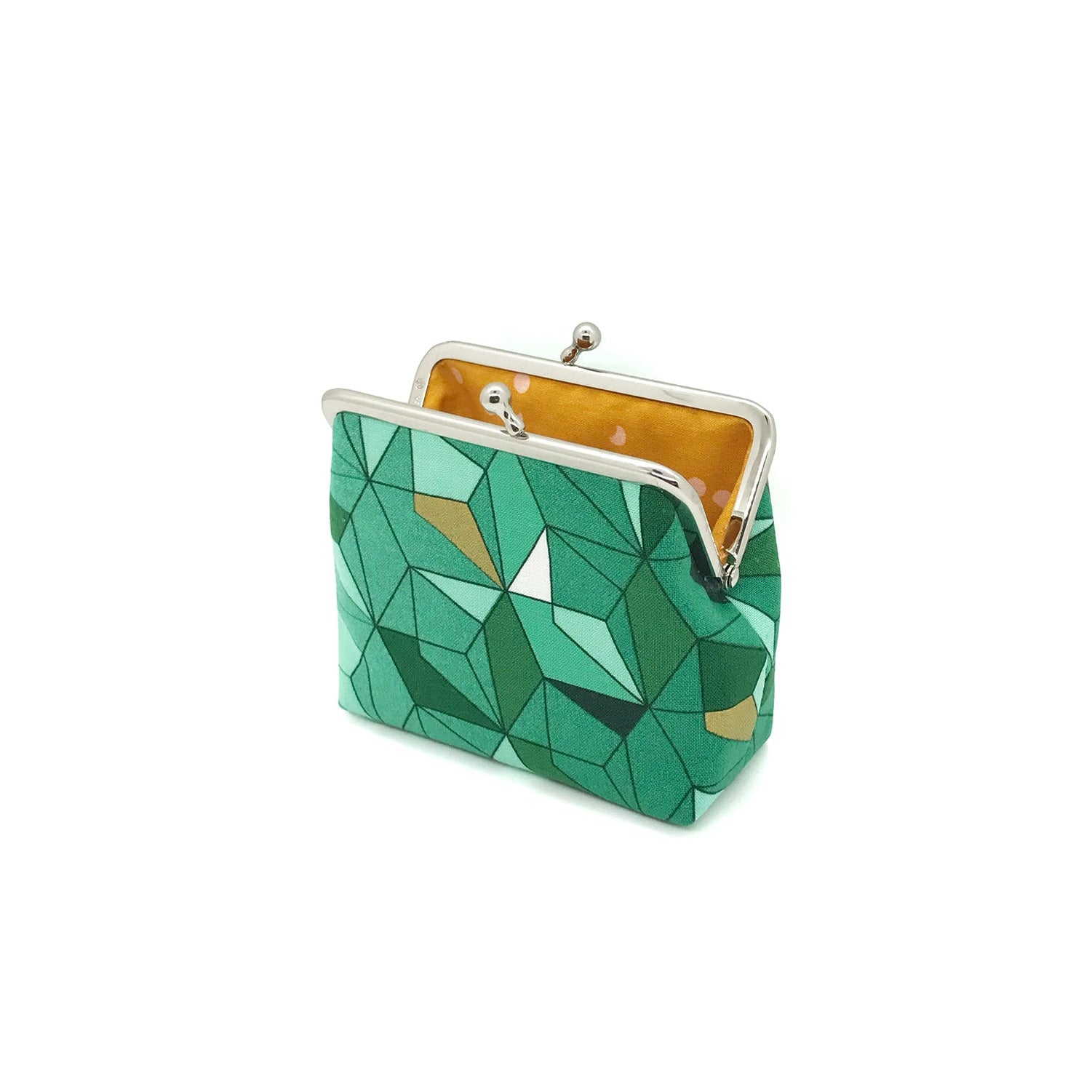 Die grüne Münztasche mit grafischem Muster und kleinen Goldakzenten ist perfekt für die Aufbewahrung von Kleingeld, Lippenstift oder Notfallsmedikamenten. Das Muster verleiht der Börse eine elegante Note. Ideal für unterwegs und praktisch zugleich.