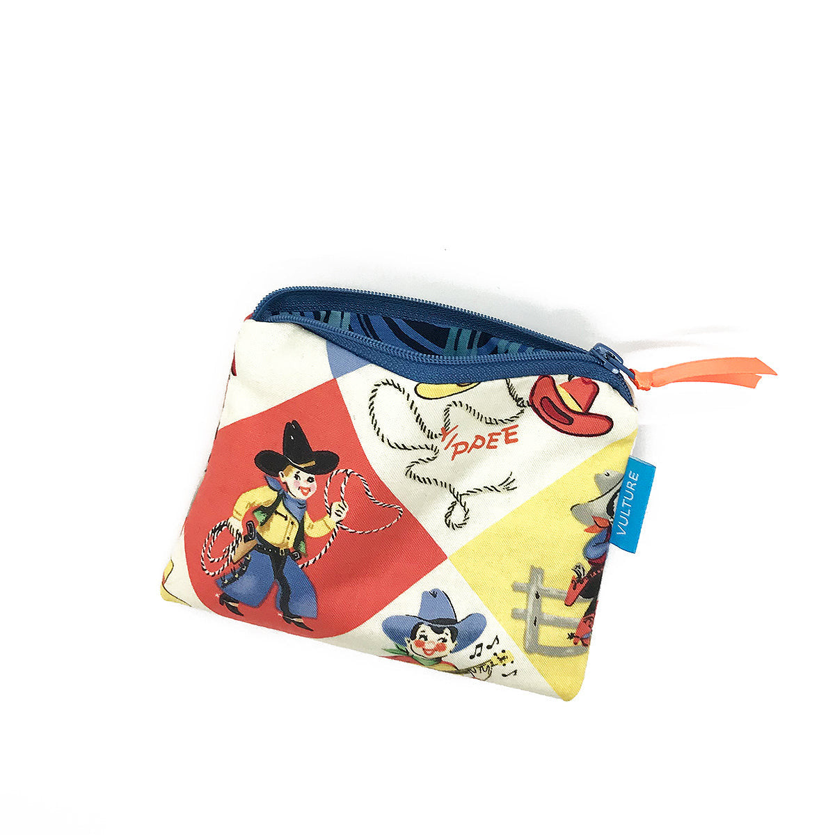 Kleine Reißverschlusstasche mit retro Motiv, aus hochwertigen Baumwollstoffen.