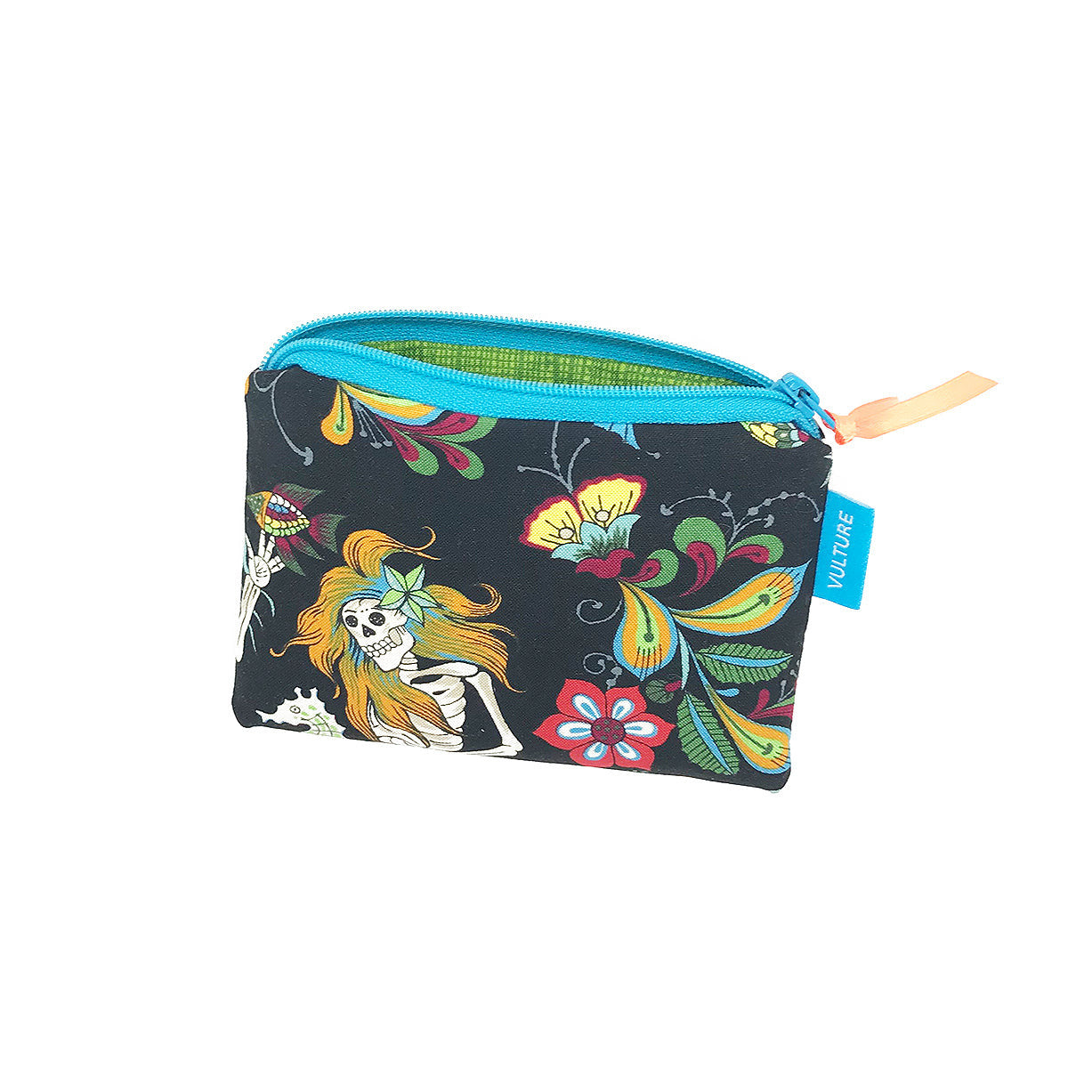 Kleine schwarze Reißverschlusstasche mit gruseliger Nixe, aus hochwertigen Baumwollstoffen.